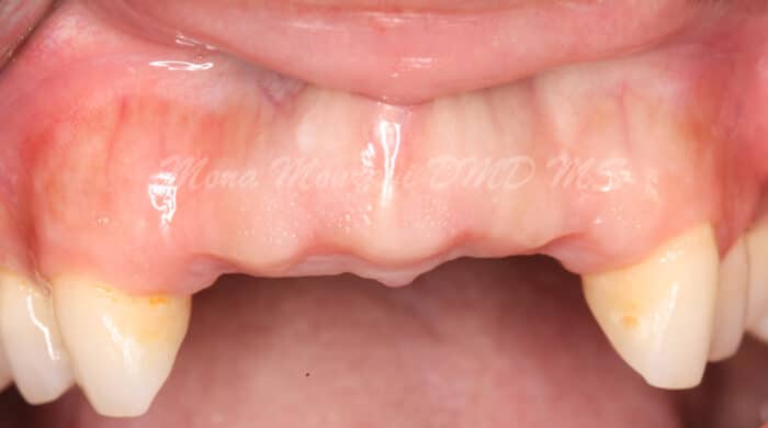 before image of a patient with two missing teeth in need of a ceramic dental implant